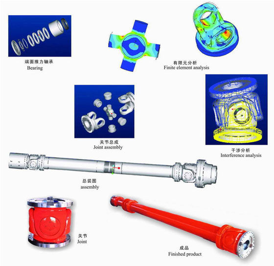 專業(yè)設計,回轉(zhuǎn)直徑自φ680mm至φ1200mm,轉(zhuǎn)矩1600Kn.m至9000Kn.m,結(jié)構形式見圖3 ,節(jié)點傾角最大為10°,基于拓撲學理論、有限元分析及經(jīng)驗修正,以使得在確定的回轉(zhuǎn)直徑下綜合獲得叉頭、十字軸、滾動軸承的高承載能力及長時間使用壽命,主要用于大型鋼軋機主傳動、穿孔機主傳動、中厚板軋機主傳動、爐卷軋機主傳動及其他重型機械主傳動,使用特點為超重載荷。 |